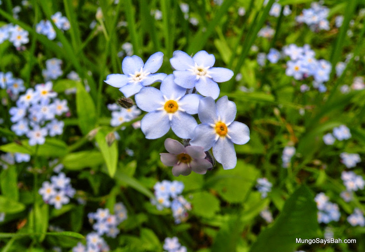 Baby blue coloured Forget Me Nots were scattered at the wood's edge.